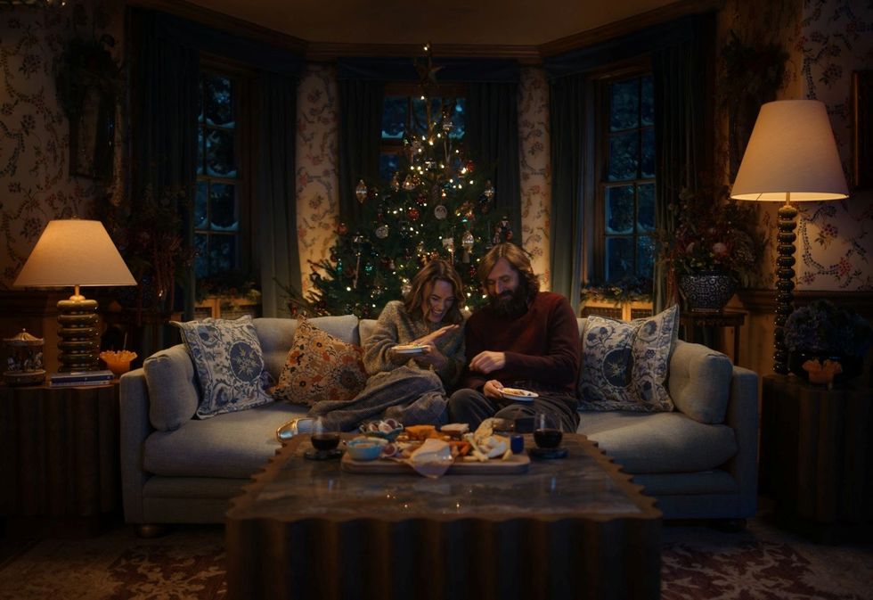 A scene from the Waitrose Christmas 2025 ad starring Keira Knightley and Joe Wilkinson.