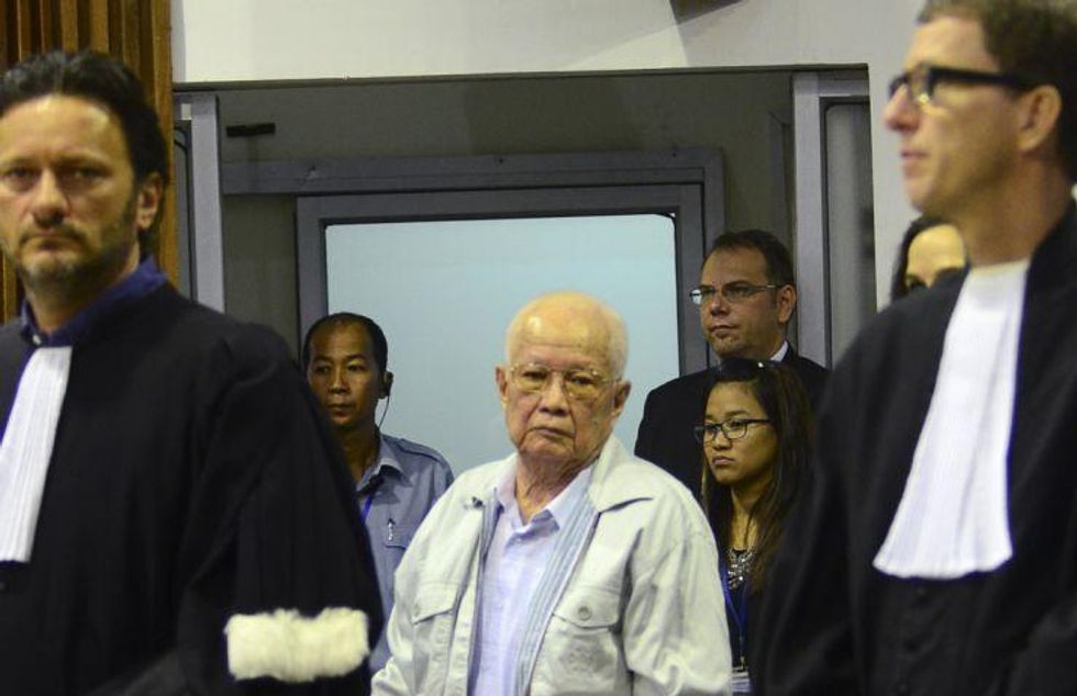 Khieu Samphan was the regime's 83-year-old former head of state, and Nuon Chea was its 88-year-old chief ideologue. When the verdict was announced Nuon Chea said he was too weak to stand from his wheelchair and was allowed to remain seated. Because of the advanced age and poor health of the defendants, the case against them was divided into separate smaller trials in an effort to render justice before they die. Both men now face a second trial that is due to start in September or October, this time on charges of genocide.