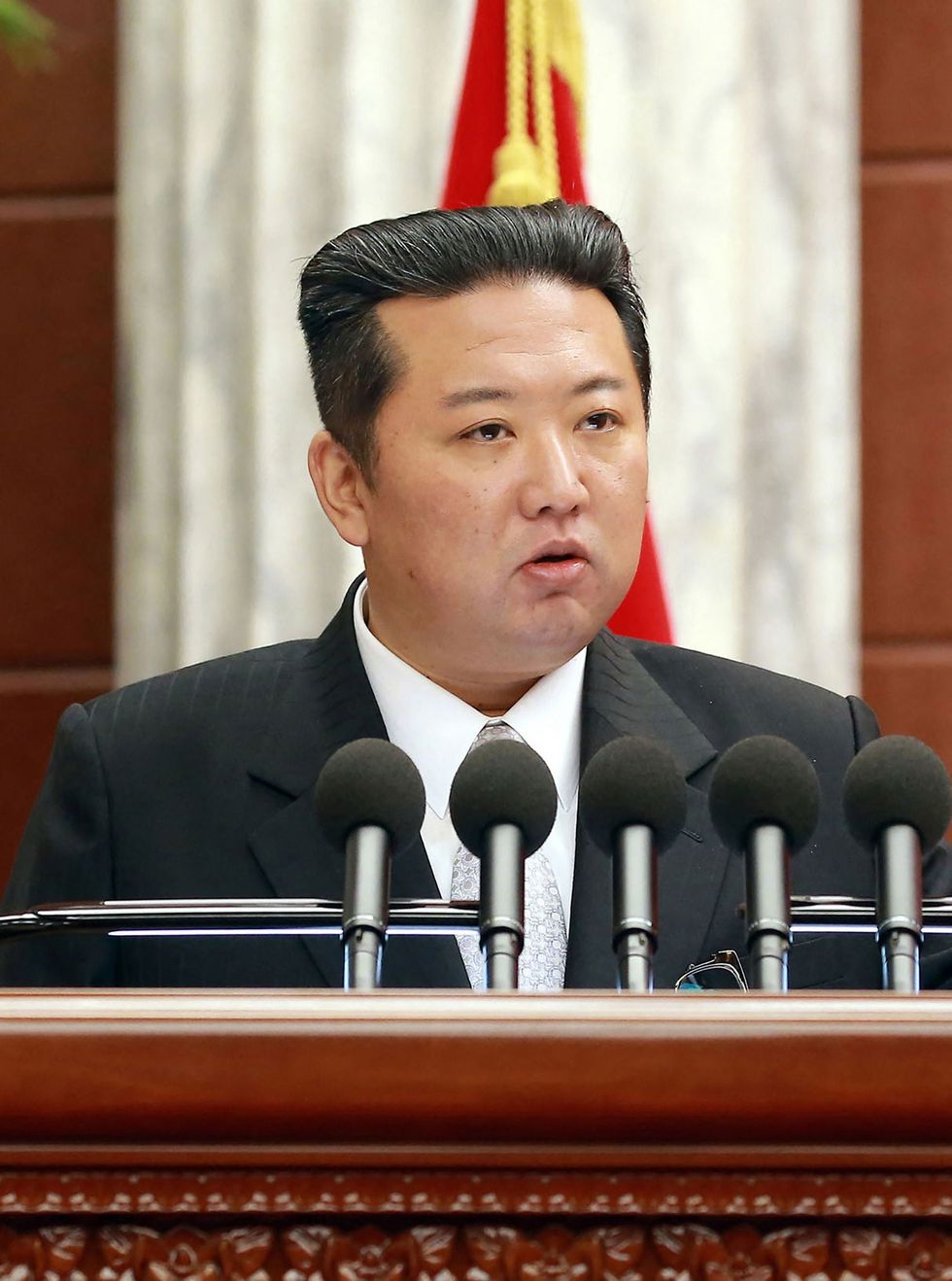 North Korean leader Kim Jong Un now looks unrecognisable in photos released by the state media after dramatic weight loss.