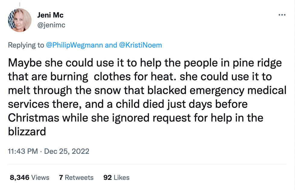 Although Noem sent the National Guard to deliver firewood to people on the reservations on Saturday, the effects of the storm are still hitting hard.