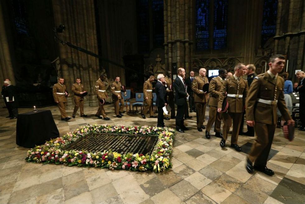 Service men walk past the grave of the Unknown Warrior, Westminster Abbey