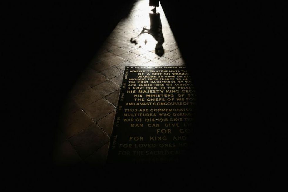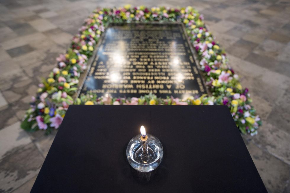 An oil lamp burns beside of the grave of the Unknown Warrior