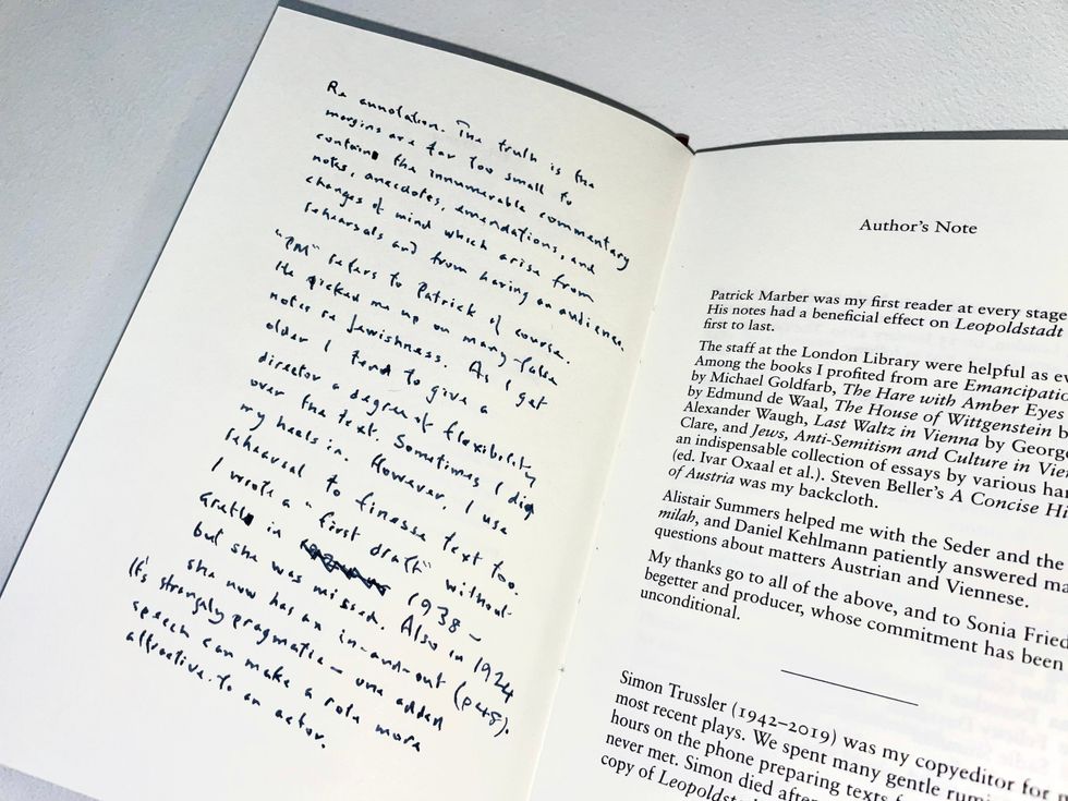 The annotated texts include a first edition hardback of the Olivier Award-winning play Harry Potter And The Cursed Child, with notes from screenwriter Jack Thorne, and a rare boxed first edition of Leopoldstadt by Tom Stoppard, which was named best new play at the recent Tony Awards.