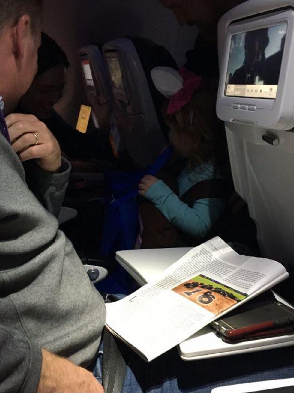Molly’s father secretly went around the plane and handed out the following note, that fellow passenger Stephanie Kahan uploaded on Twitter: