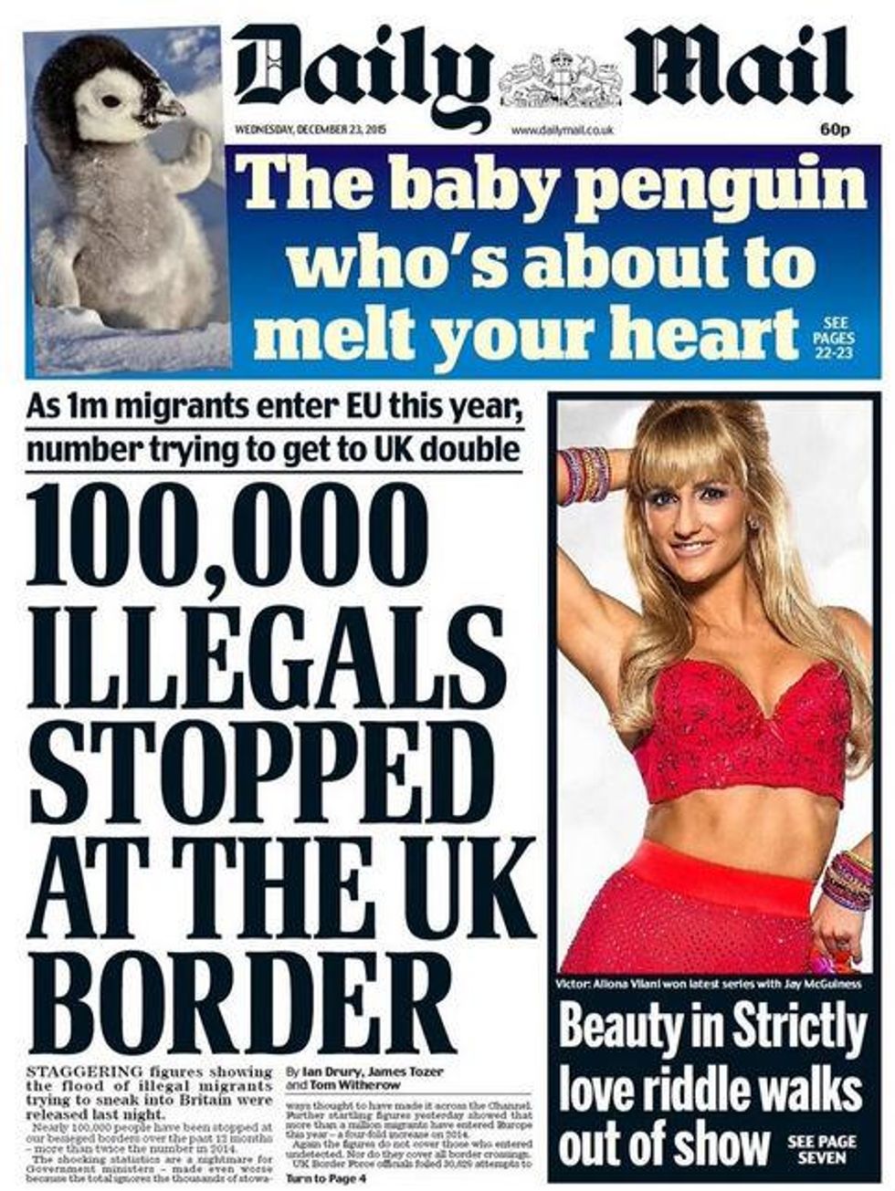 But the Daily Mail is more worried about a baby penguin than the 100,000 people it claims are seeking a better life in Britain.