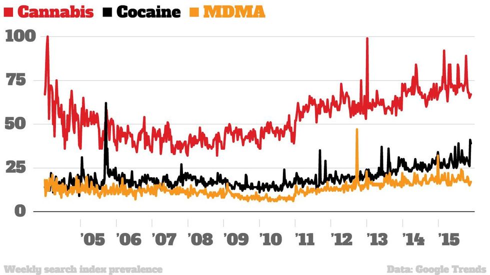 Although using search engine popularity as a barometer for drug usage isn't an exact methodology, it does provide a useful insight into what substances people are trying to discover more about.