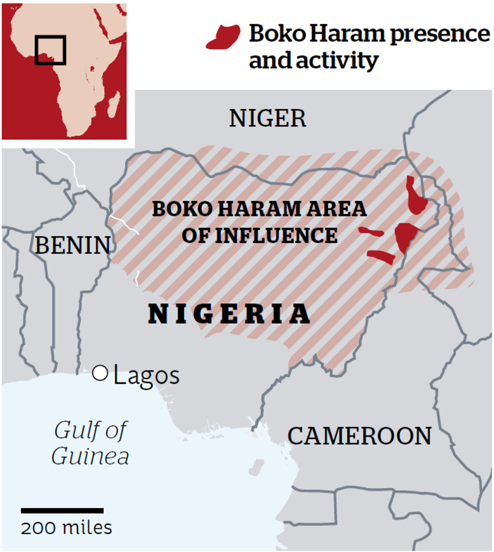 Boko Haram has apparently been emboldened by the gains of Isis in Iraq and Syria and is now behaving like a conventional army in the states of Borno, as well as Adamawa and Yobe, all in eastern Nigeria near the border with Cameroon and Chad.