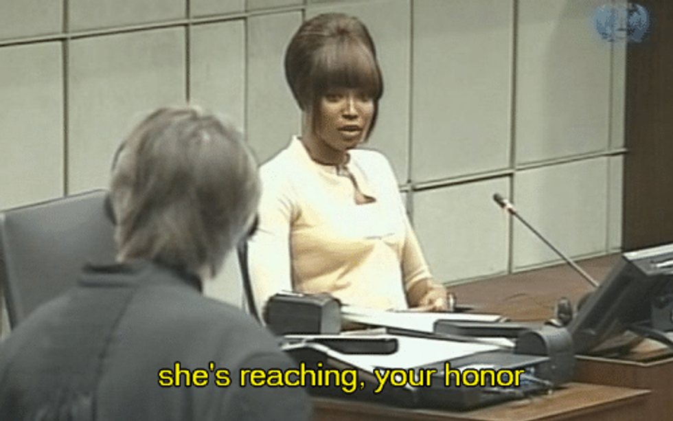 Some people said that they thought the stitching on the back of her jacket looked like a skyscraper with a plane crashing into it.