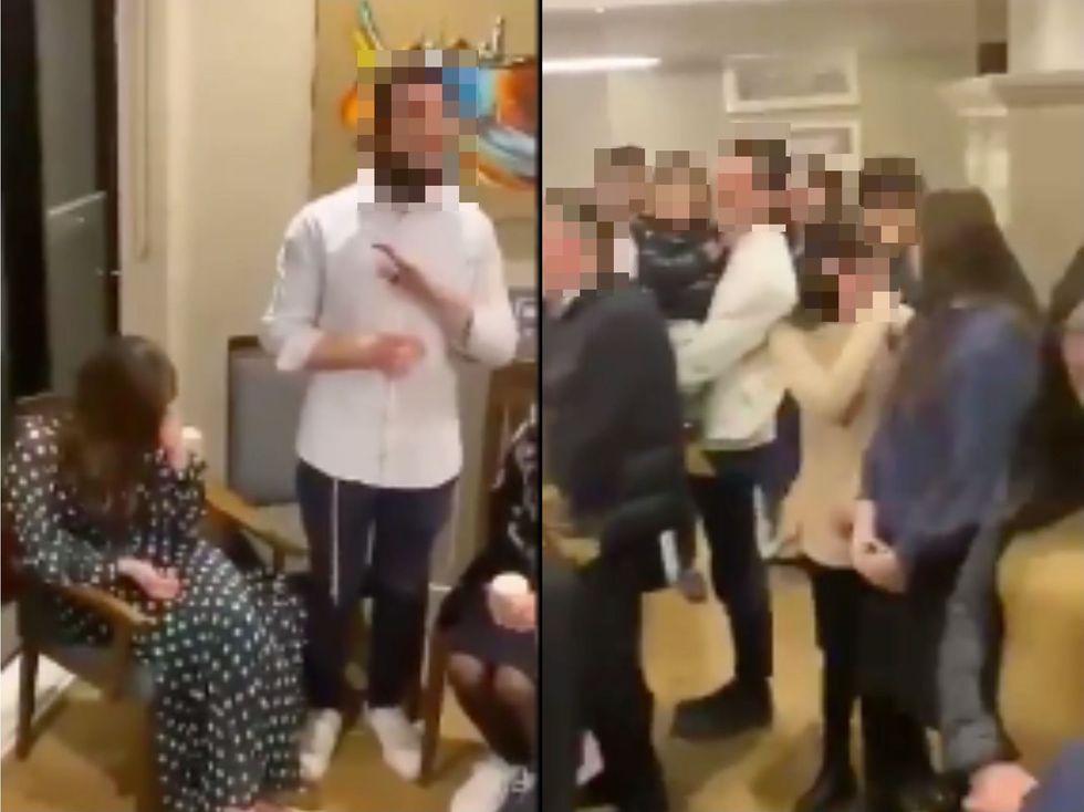 Footage shared online showed dozens of guests packed inside the husband and wife-to-be’s home, in blatant breach of the region’s coronavirus restrictions which bans all indoor gatherings.
