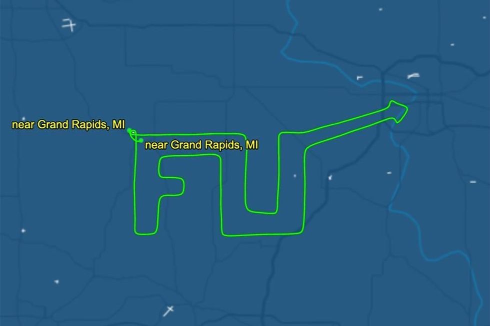 Ed Frederick, 45, spent about an hour charting a path over Michigan’s Grand Rapids, spelling out a message for the state's governor Gretchen Whitmer: “F U”.