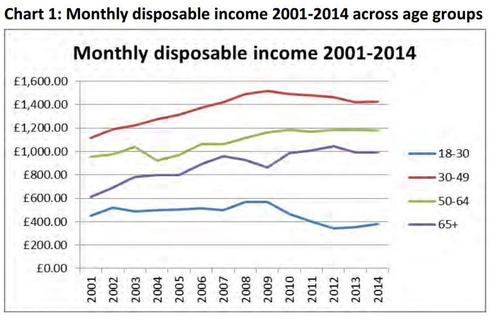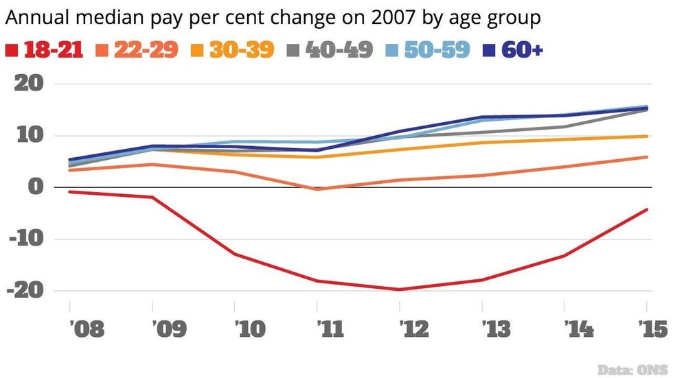 Since the recession in the UK, younger generations took the annual pay cut for previous generations: