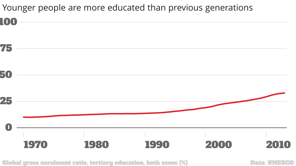 Today's younger generation are the best-educated generation ever, globally speaking.