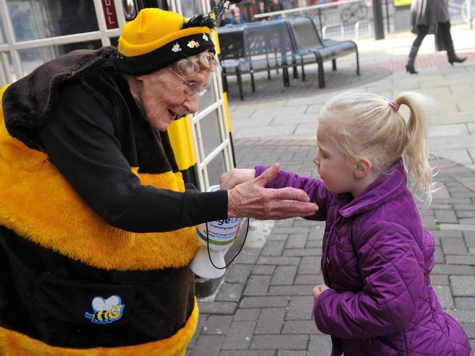 93-year-old Jean Bishop is known as the bee lady in Hull. She began raising money for Age UK 14 years ago, wearing a bee costume while rattling her collection tin. So far she has raised more than £100,000.