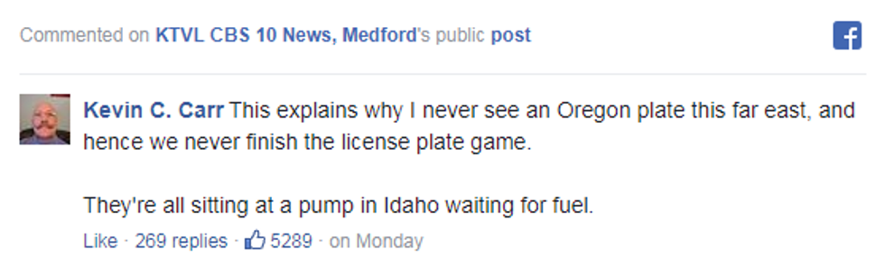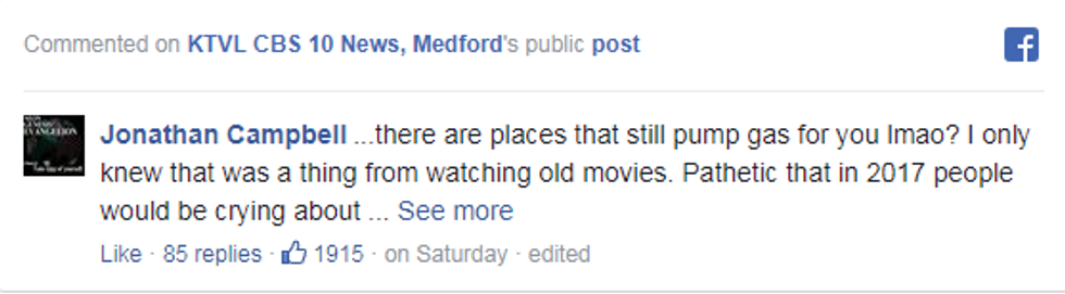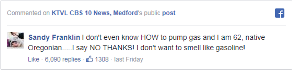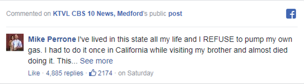 Another user, Mike Perrone said he has lived in Oregon all his life and refuses to pump his own gas and that he “can’t even.”