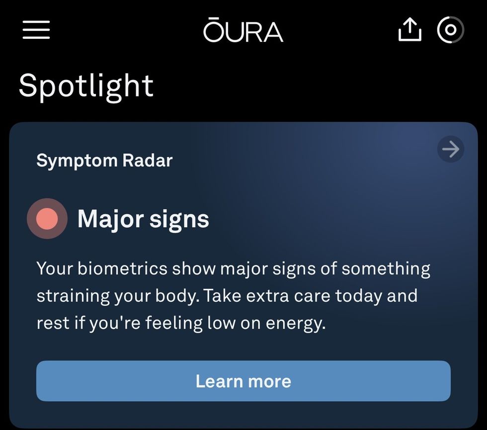 The first time I got a real warning was when I came down with the flu. Picture this: I'm wrapped in blankets, tissues everywhere, and working from the sofa like a sad little blob writing news stories about Donald Trump. I hadn't checked my Oura app yet (I wasn't about to fall into a placebo trap), but when I finally opened it up, there it was: an alert saying I had "major strain" and needed to take it easy.