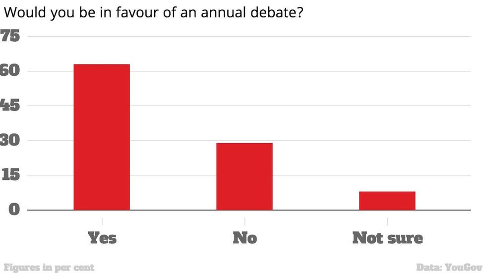 The online survey by YouGov Daily has shown that 63 per cent were in favour of such debates, compared to only 29 per cent opposed.