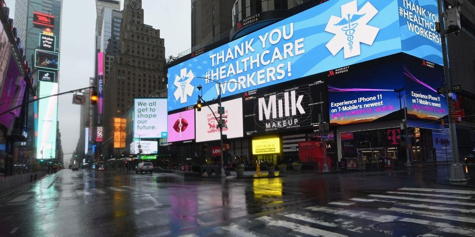 Meanwhile, across the pond in New York, the usually bustling Times Square was quieter than it’s ever been.
