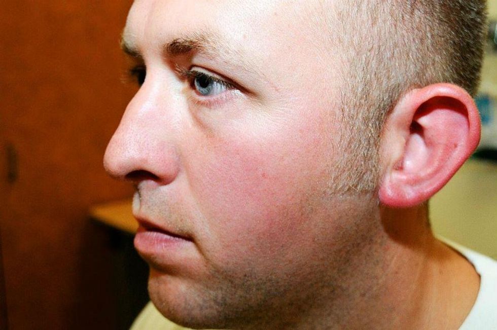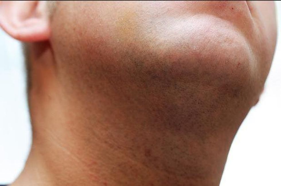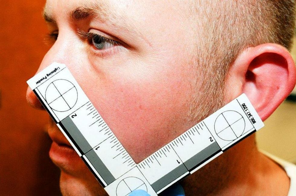 His medical file from the hospital shows he had a "contusion" to his face/scalp/neck and other unspecified injuries to the face and neck.