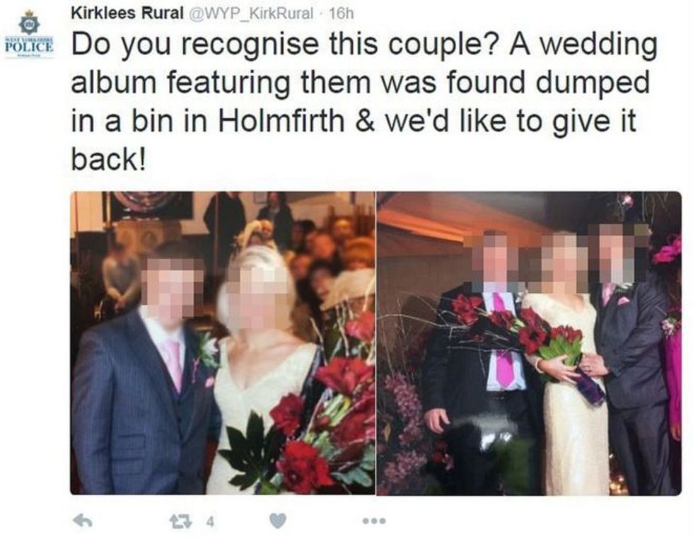 An elderly man found the album dumped in a bin and, worried it had been stolen, handed it into police in West Yorkshire's Kirklees Rural branch.