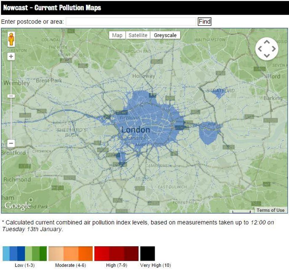 The London Air Quality Network, which measures pollutants from 50 sites across the capital, is showing particularly low levels across the city centre today - as seen on the below map (blue indicates very low levels).