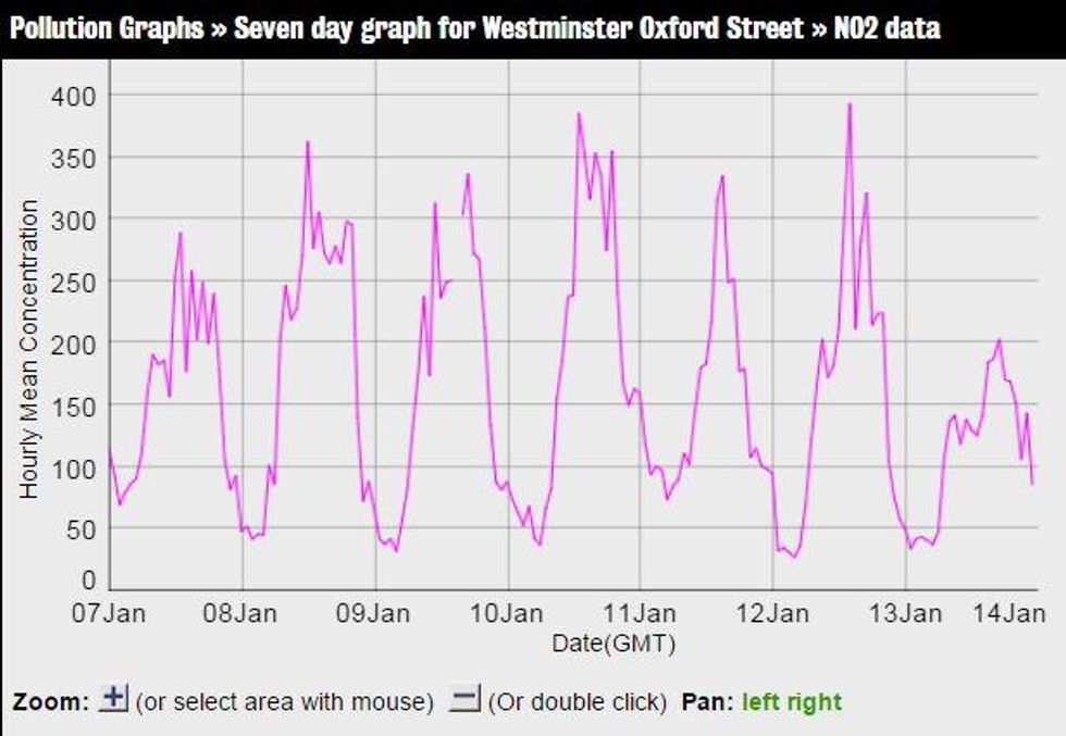 UPDATE: Nitrogen dioxide levels on Oxford Street - one of the most polluted roads in the world - were noticeably lower yesterday while a bus strike across the city was going on. This has led to increased calls for Oxford Street to be pedestrianised and for the city to invest in cleaner public transport.