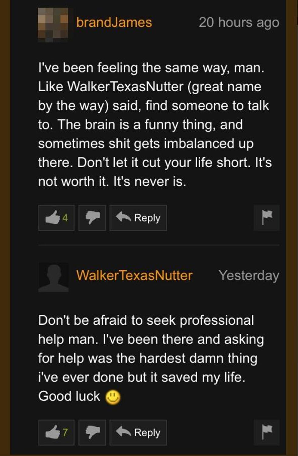 In all seriousness, though, whilst this story is very inspirational, searching for mental health on a porn website probably isn't the best solution to the problem.