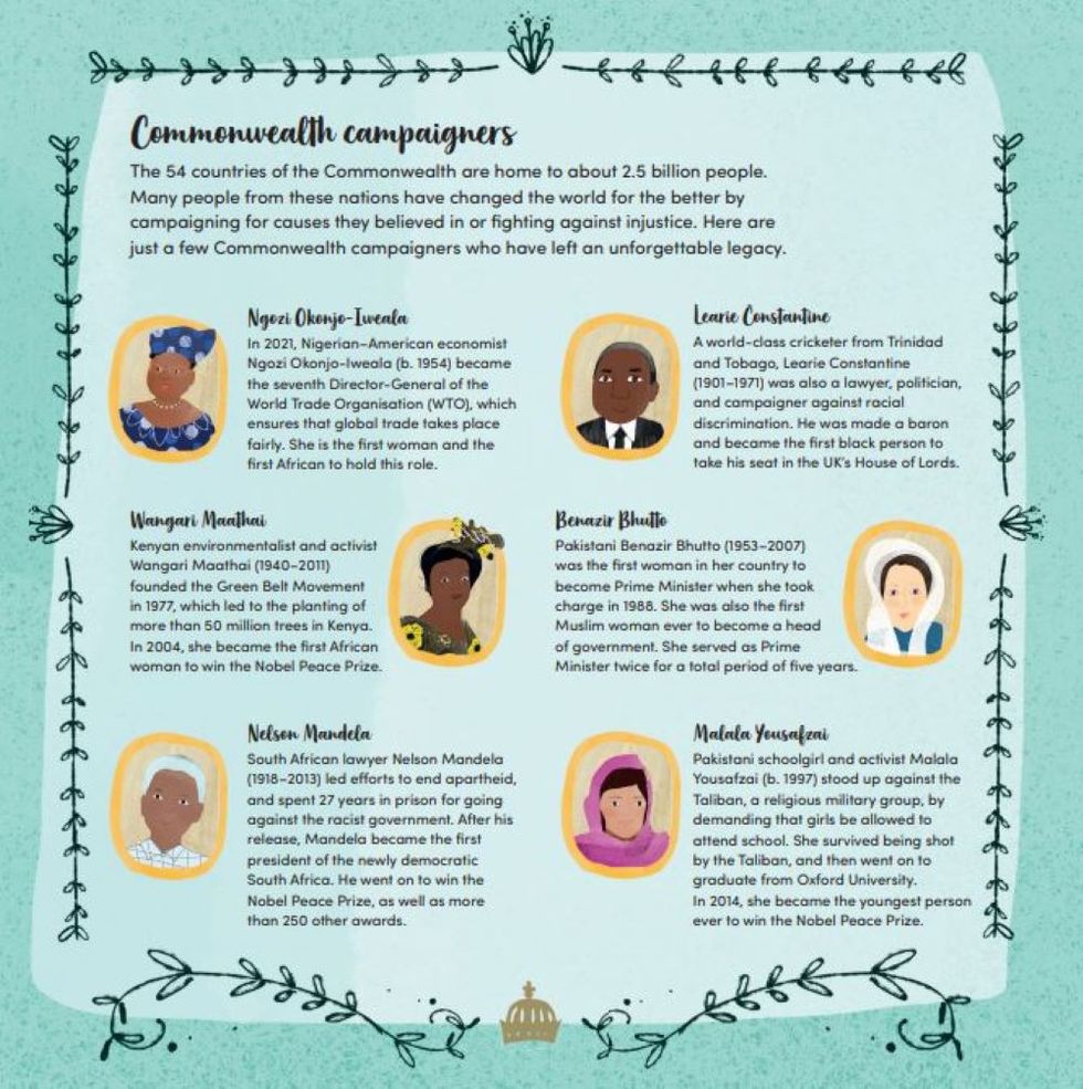 Famous quotes from the Queen, along with details about the lives of significant Commonwealth figures such as former South African President Nelson Mandela, are to feature in the book.