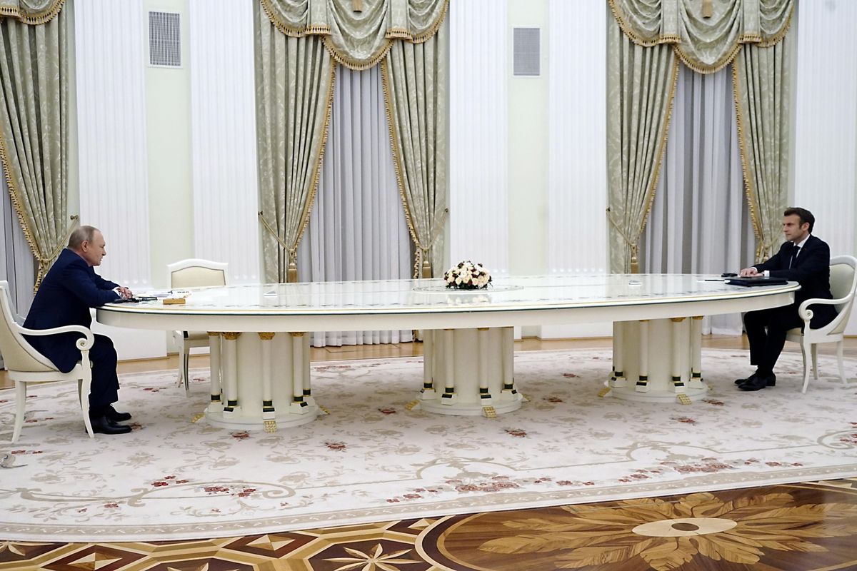 French President Emmanuel Macron sat across from Russia's Vladimir Putin on Monday in an attempt to de-escalate the Ukraine standoff – and the pair certainly kept their distance.