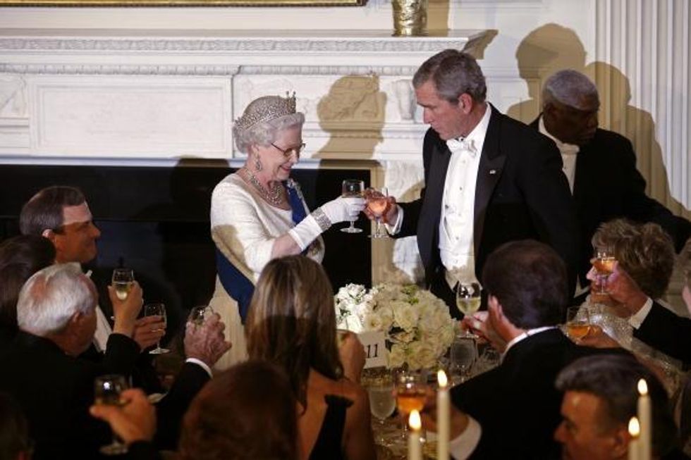 President Bush and Queen Elizabeth II met in May 2007 while the Queen was visiting Washington DC, Virginia, and Kentucky. Bush and First Lady Laura Bush hosted a white tie state dinner honoring the Queen and Prince Philip as well.