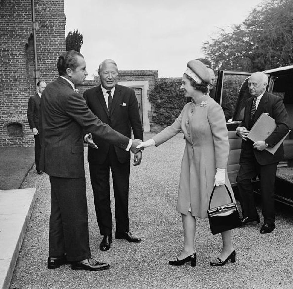 In October 1970, Queen Elizabeth II and Prime Minister Edward Heath met with President Nixon and First Lady Pat Nixon while they visited the UK.