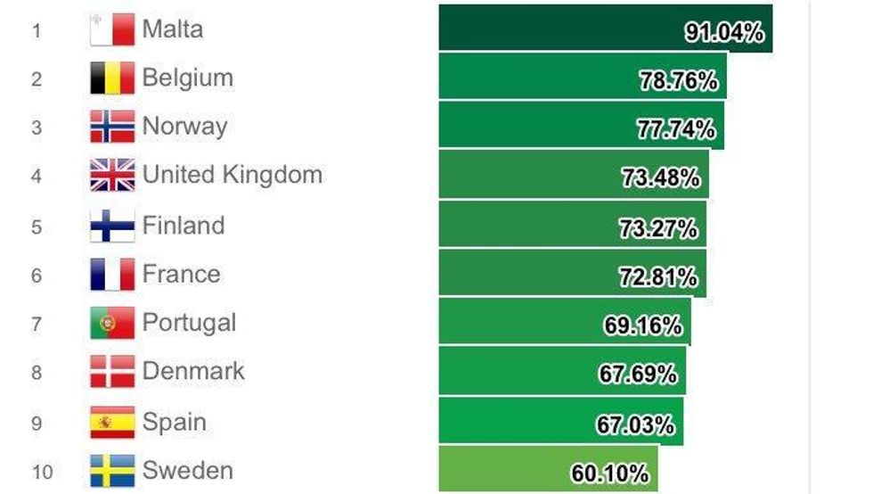 The UK comes fourth on the list, dropping one place from last year. Britain topped the list in 2014, shortly before same-sex marriage was legalised. With trans-inclusive policies that are the envy of progressive LGBT+ advocates across Europe, Malta topped the list for the second year running.