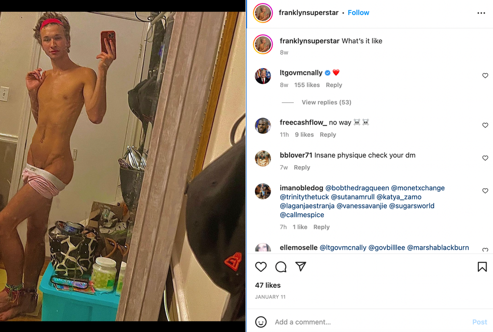 “Super look Finn,” McNally wrote on one of McClur’s posts where he’s posing topless with shorts on.
