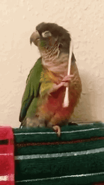 So now you know, why not lay off the Q-tips and let adorable birds use them like tiny loofahs.