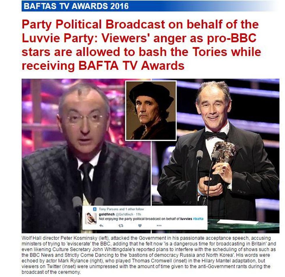 Many conservative-leaning watchers were furious at the "luvvie hijack" of the awards ceremony.
