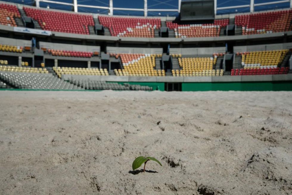 The Tennis Court at the Olympic Park after it was covered by sand to be used for beach volley.