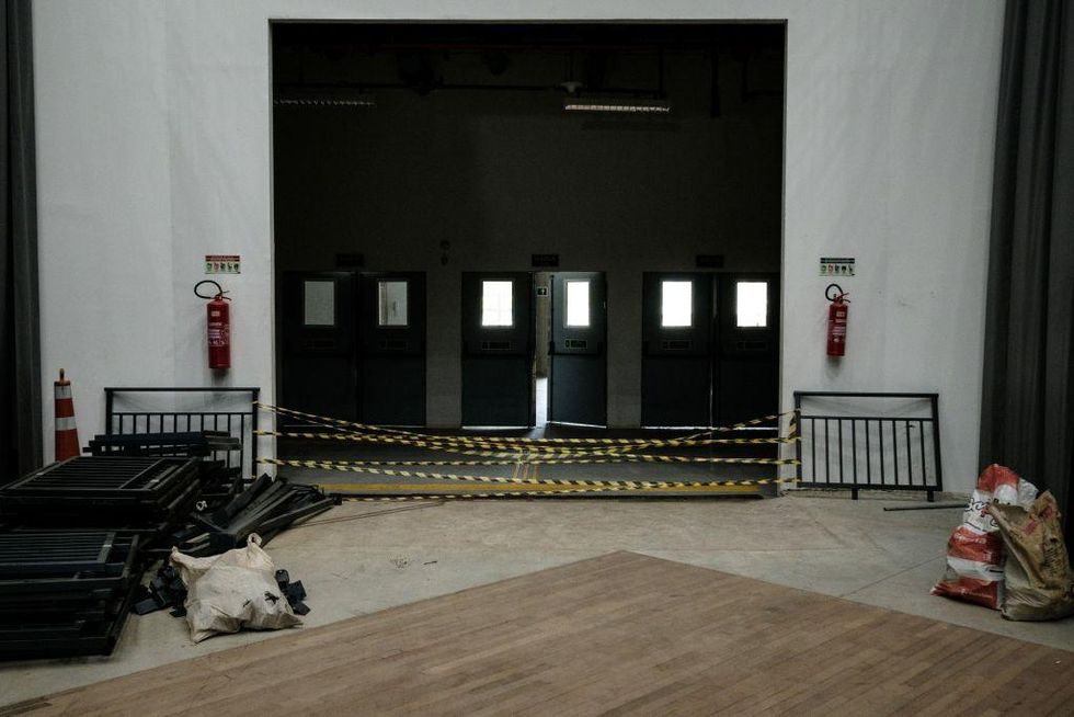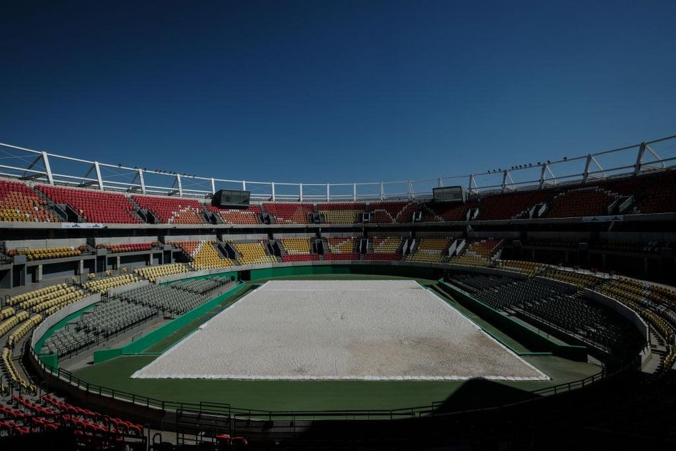 View after part of the upper seats were removed from the Carioca Arena 1, which hosted basketball.