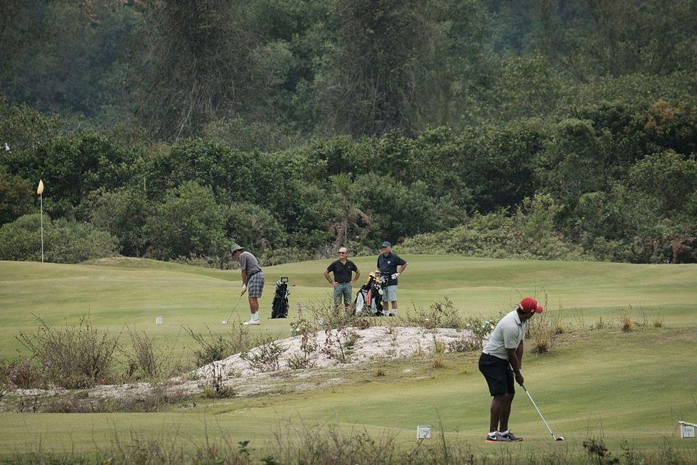 Golfers play on the Olympic golf course, created and used for Rio 2016 and now run by the Brazilian Golf Confederation for the public.