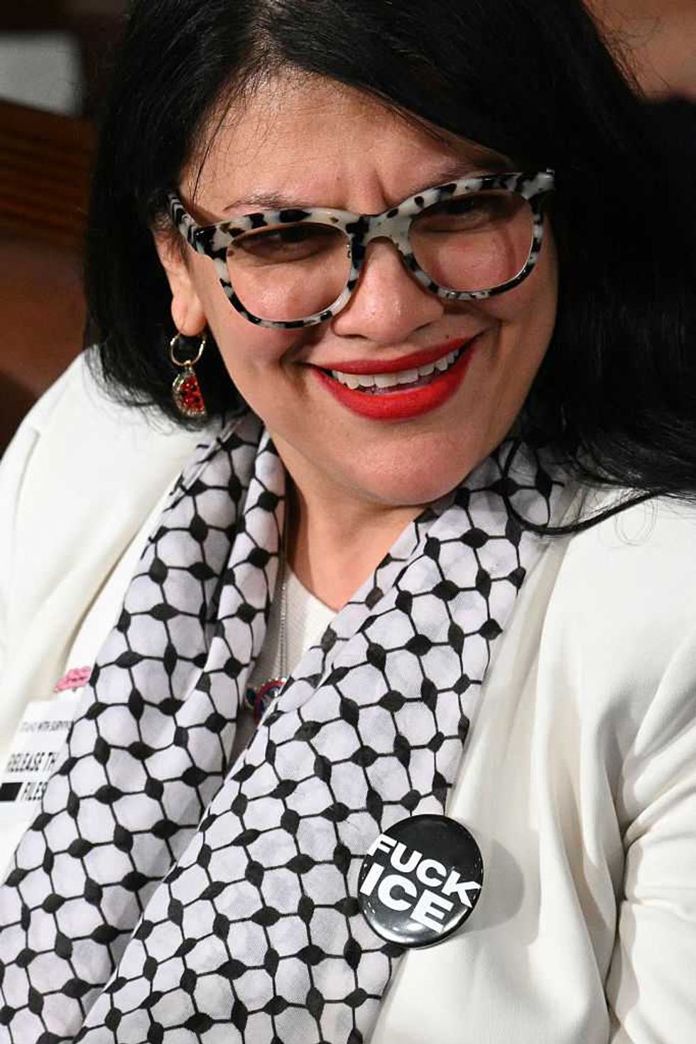 US Representative for Michigan, Rashida Tlaib, stood alongside Ilhan Omar in a show of solidarity, drawing attention with symbolic accessories.