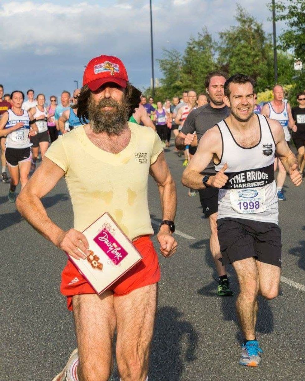 The retiree makes an effort when taking part in organised runs, dressing as Forest Gump, Freddie Mercury and World Cup winner Bobby Moore.