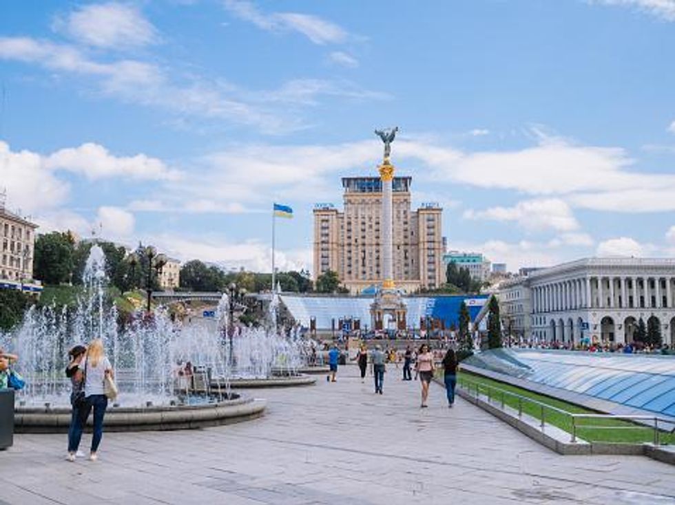 The streets of Kyiv in 2019, busy with cars and foot traffic