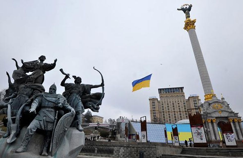 Ukrainian armed forces near Maidan Nezalezhnosti on Wednesday