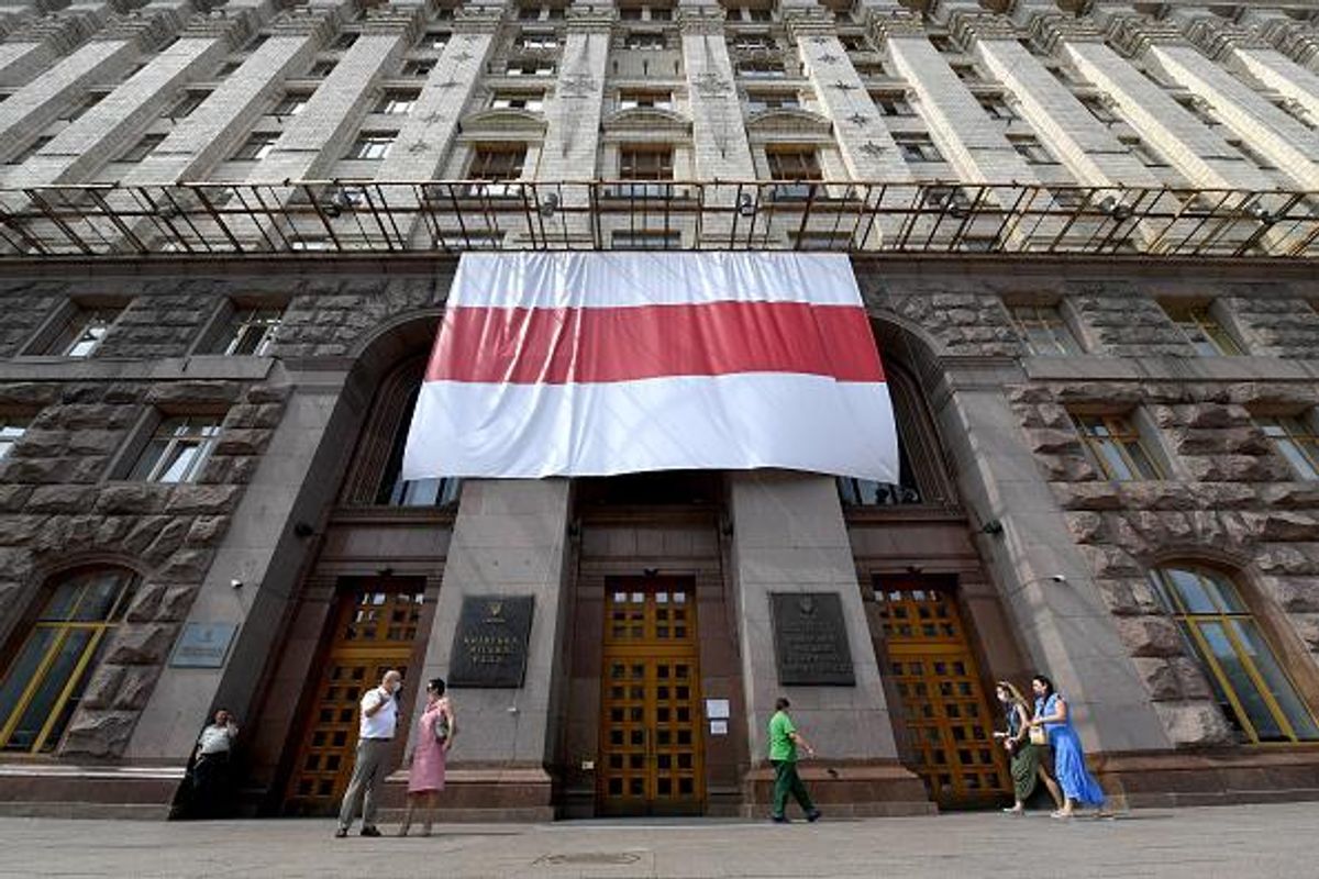 In 2020, Kyiv City Hall hung the Belarusian flag over the doors to stand in solidarity with the country amid their presidential election.