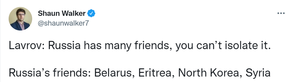 What's certain is Lavrov has big: "I have a girlfriend but you wouldn't know her, she goes to another school" energy.