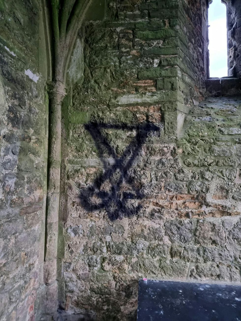 She says there were three symbols spray-painted on the Grade I listed building in total, in separate places.