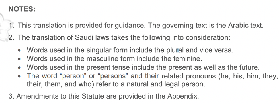 The document, translated from Arabic, reads: "The Ministry is the competent authority in the Kingdom in charge of regulating and developing the sports sector, improving its capabilities, increasing the number of individuals practising sports, and working towards enabling Saudi sports to achieve excellence locally and internationally, as well as supervising all sports activities."