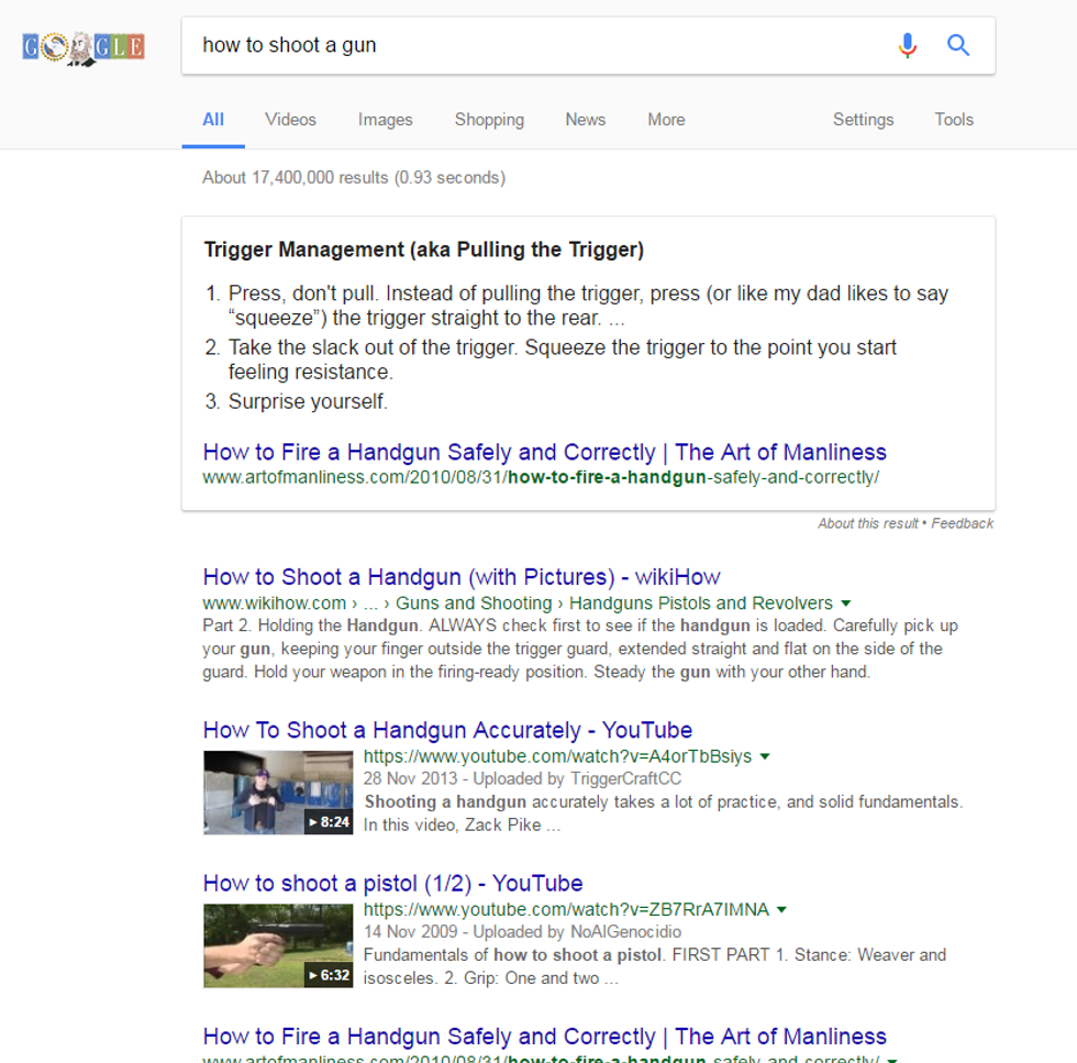 3. We searched “Nigel Farage” and got “How to shoot a gun”: