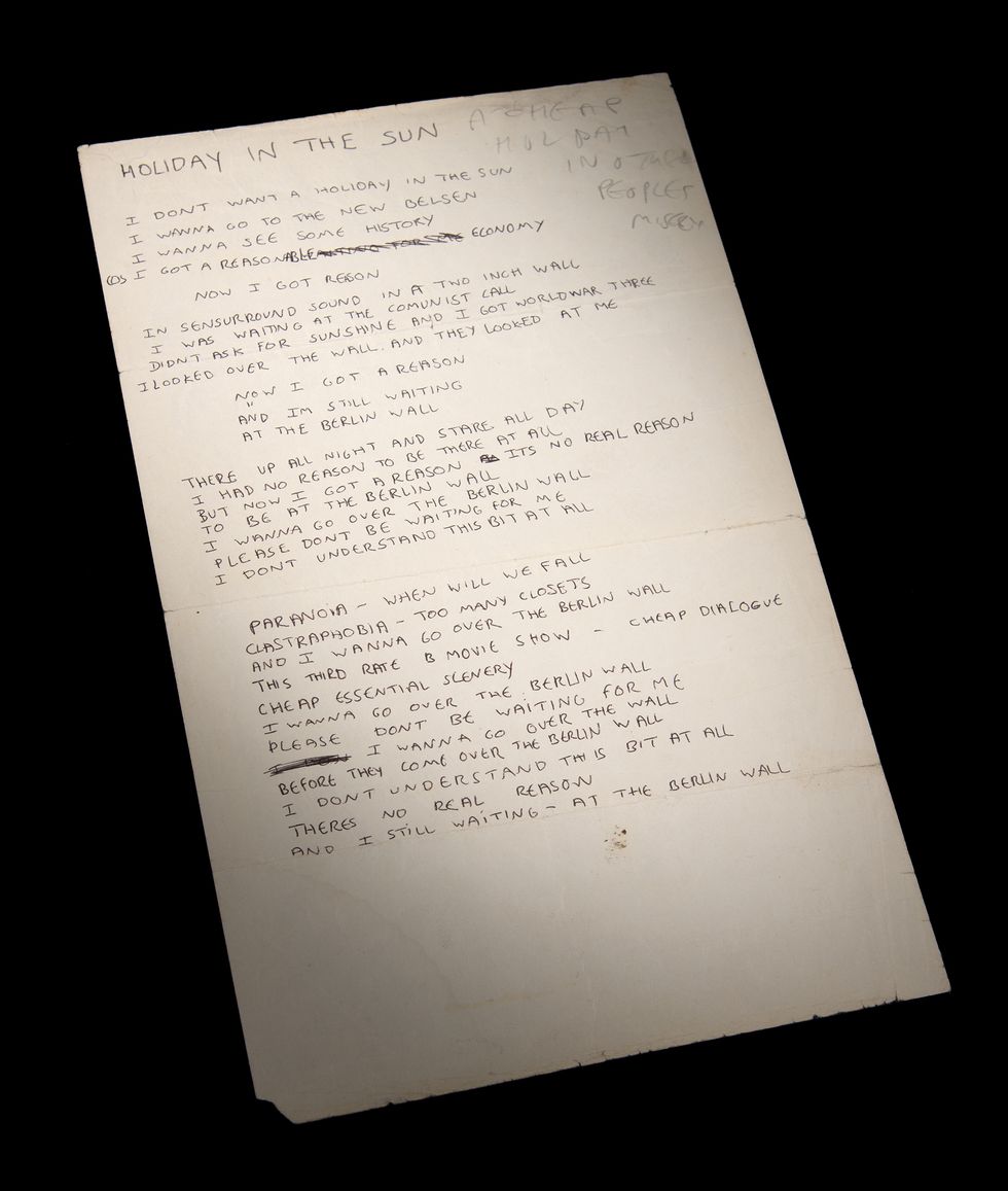 The sheet featured early drafts of Holidays In The Sun and Submission, two of the Sex Pistols’ songs from their hit 1977 debut album Never Mind The Bollocks, Here’s The Sex Pistols.