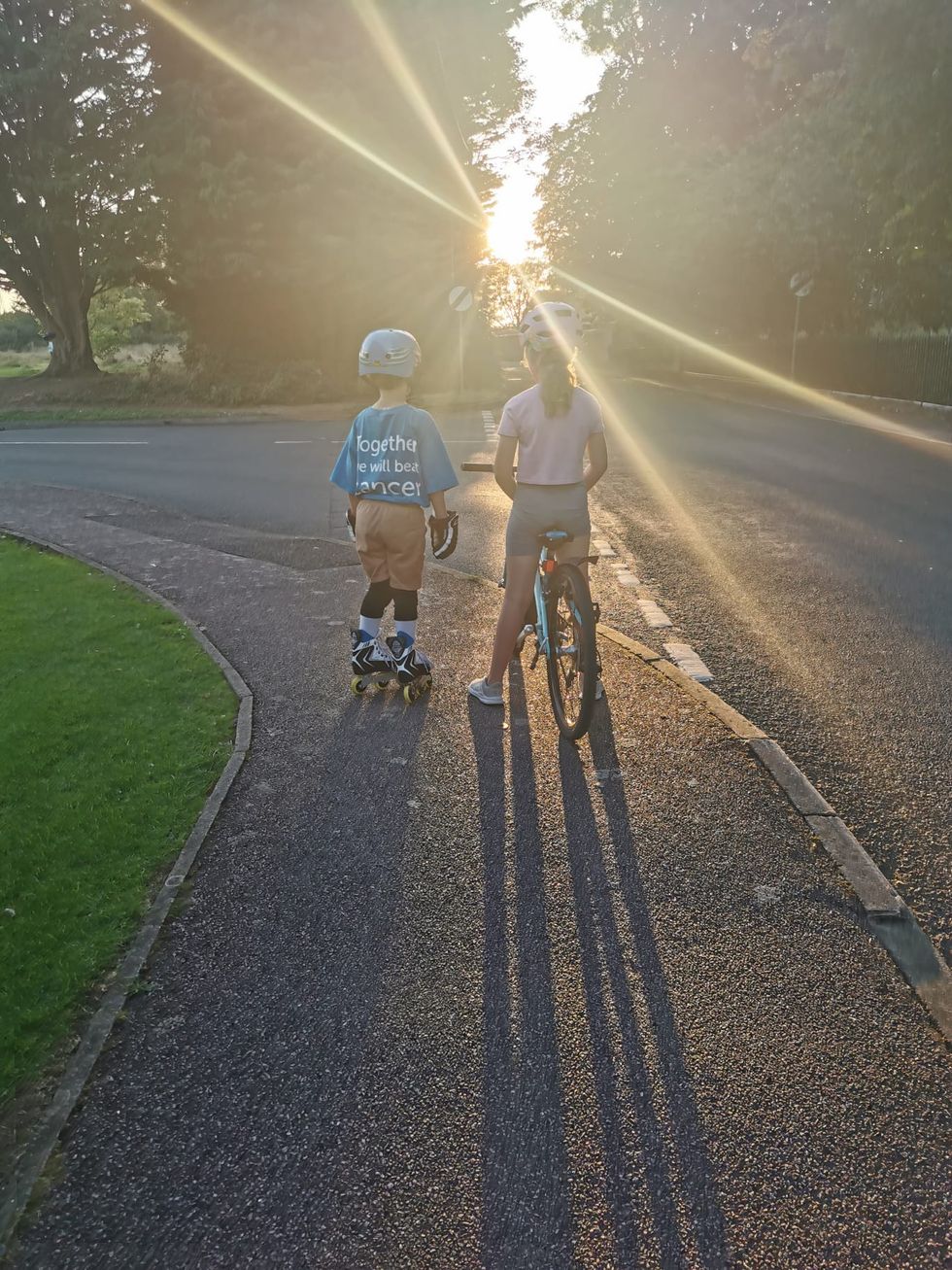 Laura said: “His older sister has been out on her bike alongside him, and sometimes rides in front to warn him where stones are on the road, so he doesn’t trip up.