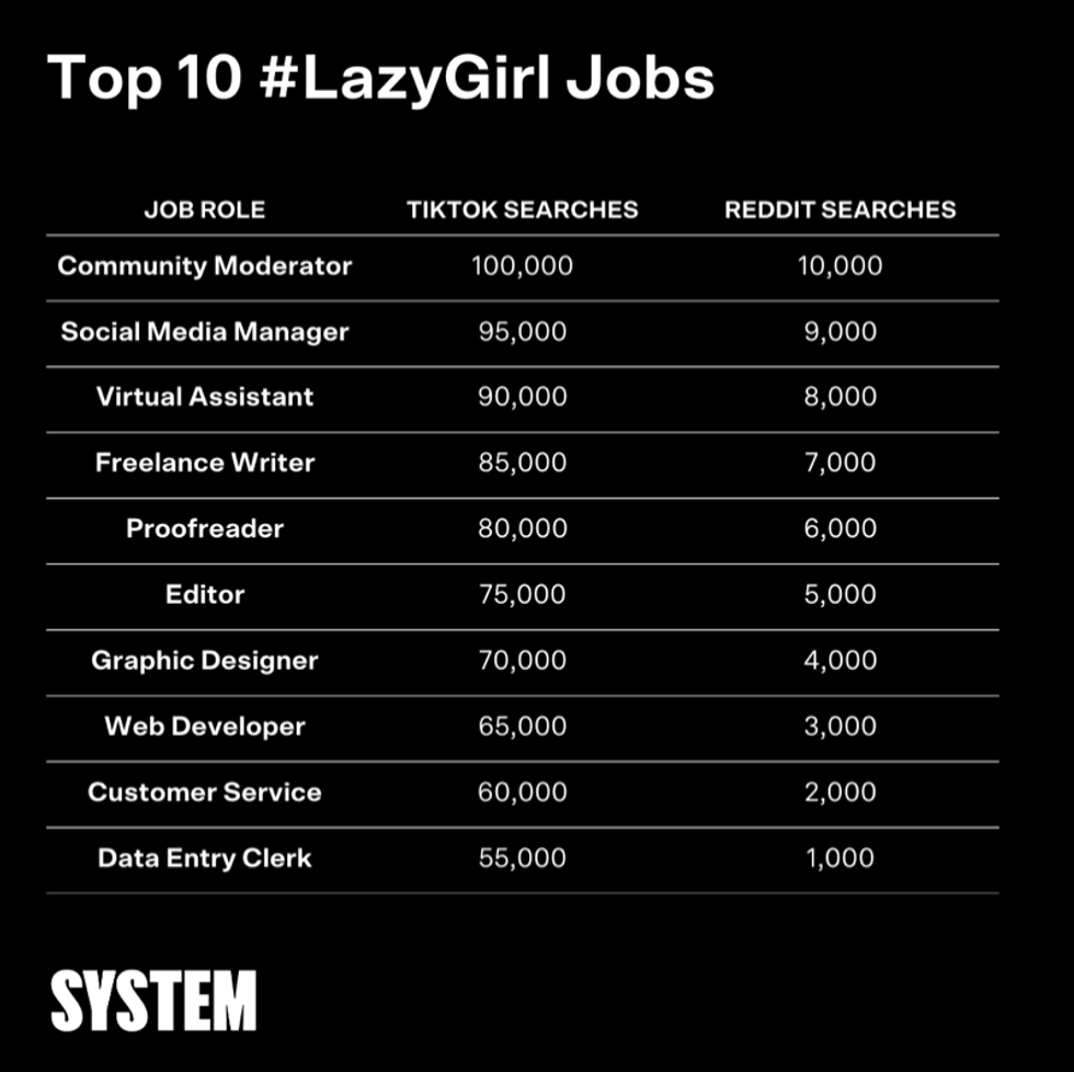 Most people strive for a healthy work-life balance, and it's becoming more evident across TikTok with searches soaring for Lazy Girl Jobs.
