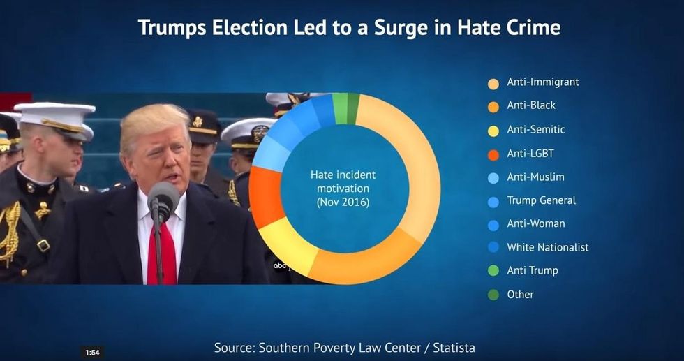 First the video displays data which suggests that the spike in hate crimes, which was seen in the UK after the Brexit vote, is similar to after some terrorist attacks.